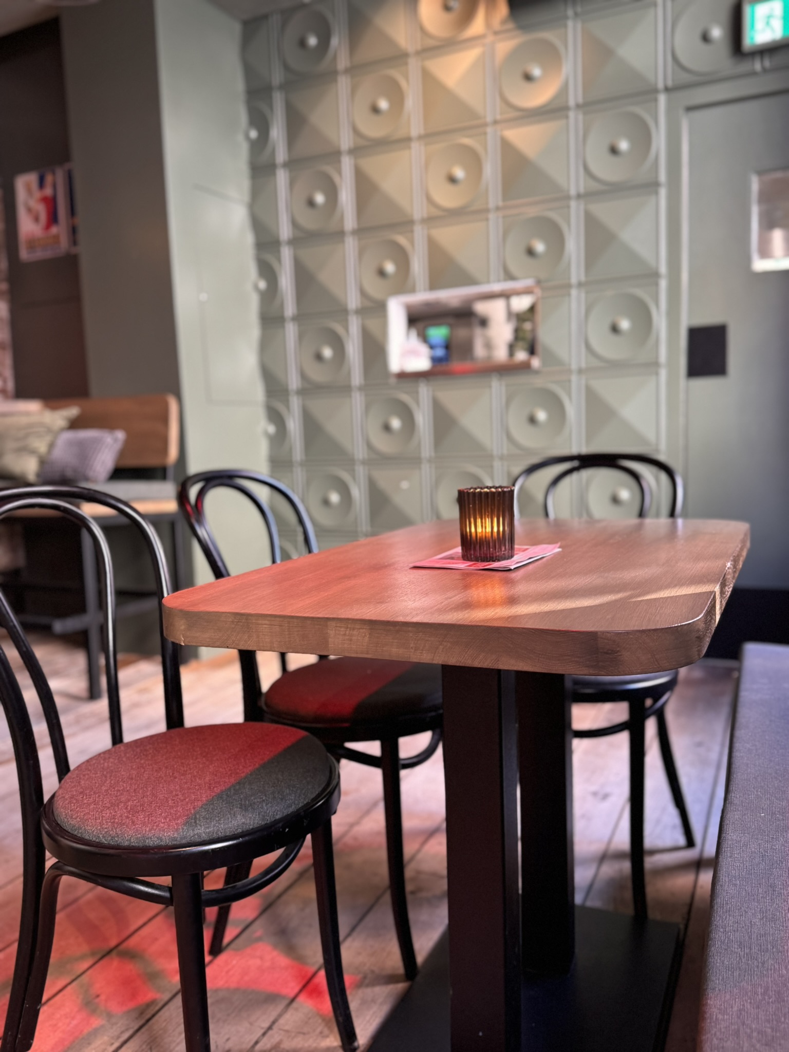 De nieuwe inrichting brengt meer balans tussen authentiek en eigentijds. Het resultaat is een sfeervolle ontmoetingsplek in het centrum van Maastricht waar gezelligheid centraal staat. Een plek waar verhalen worden gedeeld, glazen worden geheven en avonden moeiteloos langer worden dan gepland.